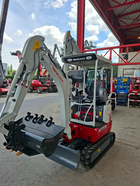 Ce qui distingue véritablement la Takeuchi TB217 R, c’est son équipement hydraulique complet. Elle est livrée de série avec trois fonctions hydrauliques : deux fonctions double effet permettant d’utiliser un grappin de tri, de démolition ou tout autre accessoire, et une troisième fonction dédiée à l’attache rapide. Cette configuration offre une flexibilité d’utilisation optimale et permet de changer d’outils facilement selon les besoins du chantier.