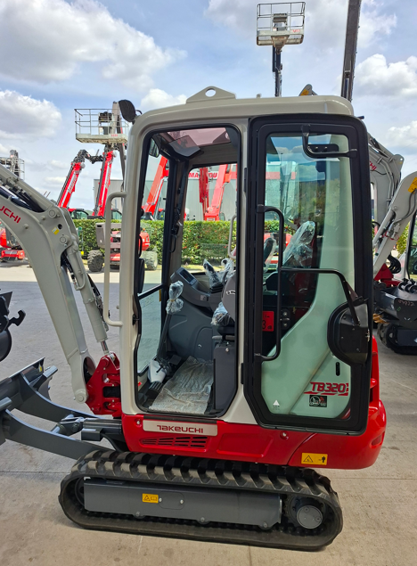 Le confort de l’opérateur est au cœur de la conception de la TB320. Sa cabine spacieuse et son siège ergonomique à suspension mécanique offrent une position de travail agréable, même lors d’utilisations prolongées. Takeuchi a également intégré des équipements modernes tels qu’une radio DAB+ avec Bluetooth et une fonction d’appel mains libres, apportant une touche de confort et de connectivité inédite dans cette catégorie de machines.